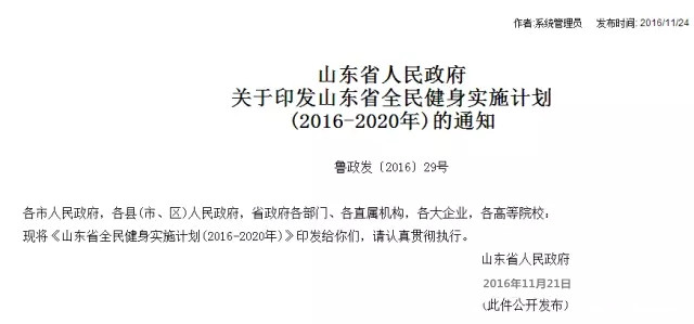 政策 | 山东政府正式印发2016-2020年全民健身实施计划