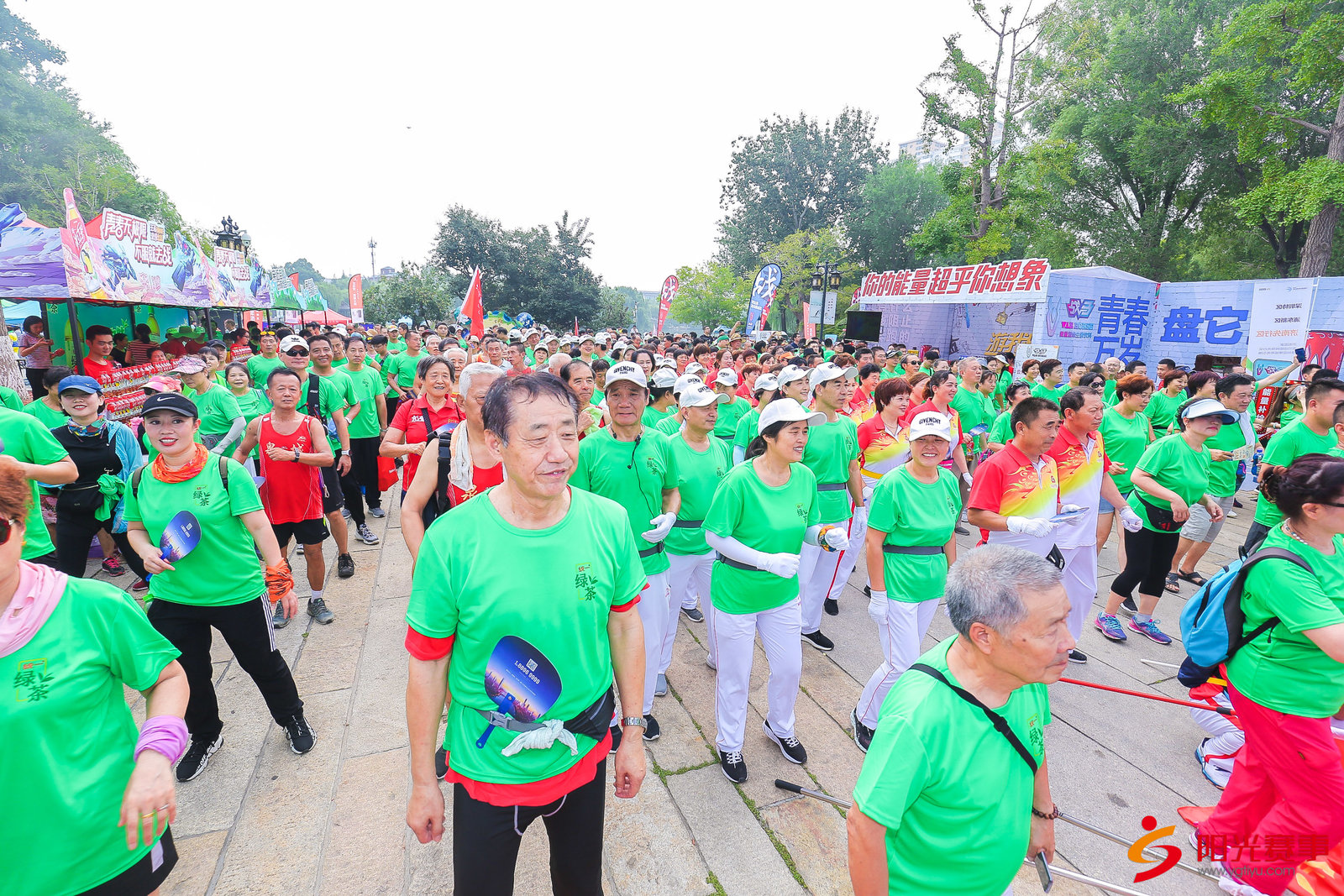 开幕式在上午8:30 举行,济南市体育局徐燕枝女士致辞,山东省体育局群体处副处长吕强同志、济南市全民健身中心主任王震宇同志,济南天下第一泉风景区管理中心党委副书记魏强同志,济南市全民健身中心副主任杨本升同志,绿地山东区域管理总部综合管理中心总监助理肖辉杰同志,出席开幕式并共同鸣笛开赛!